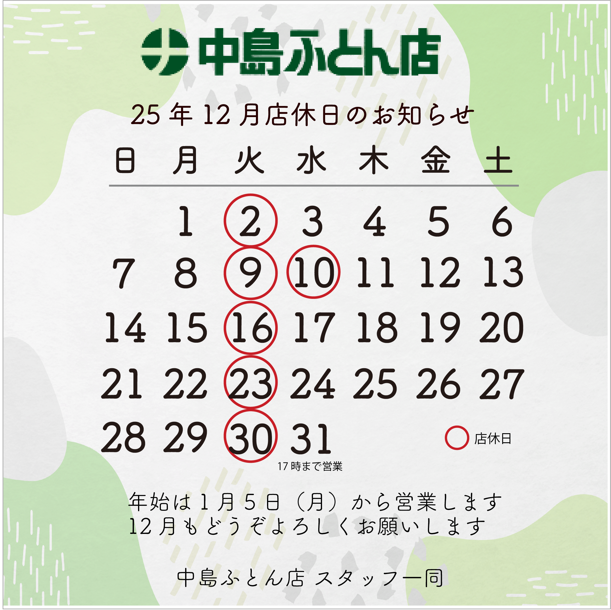 2日(火)・9日(火)・10日(水)*第2水曜日はお休みです